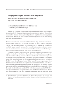 Den gegenwärtigen Moment nicht verpassenZeitschrift für Medien- und Kulturforschung, Bd. 8 (2017), Heft 1 : S. 80–85